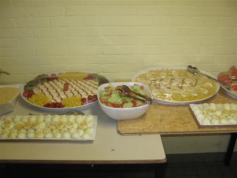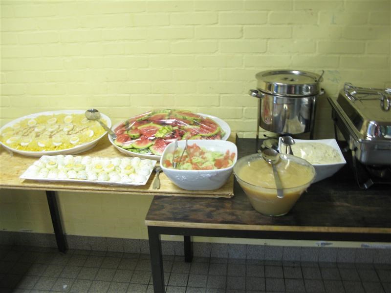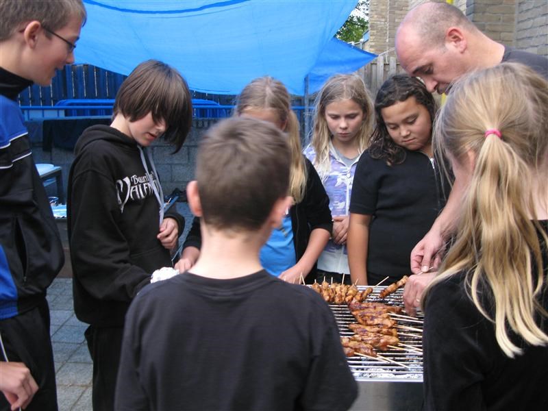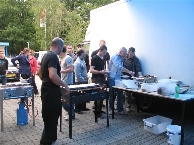 ’s Avonds gingen we barbecuen. Althans, dat wérd voor ons gedaan door Smaakvol catering. Er werd een heel buffet met salades, brood, verse sausen opgesteld, waar we tot in de puntjes bediend werden. Heerlijke worstjes en sate kregen we.