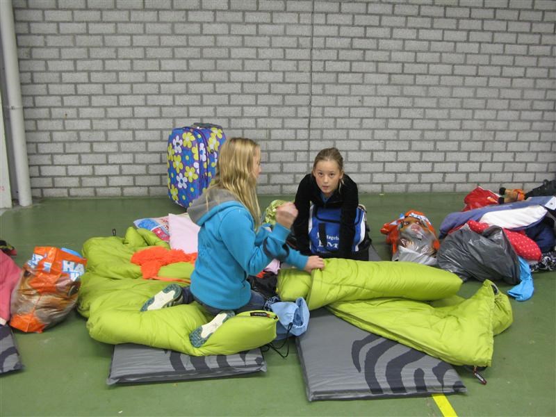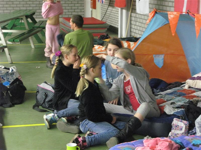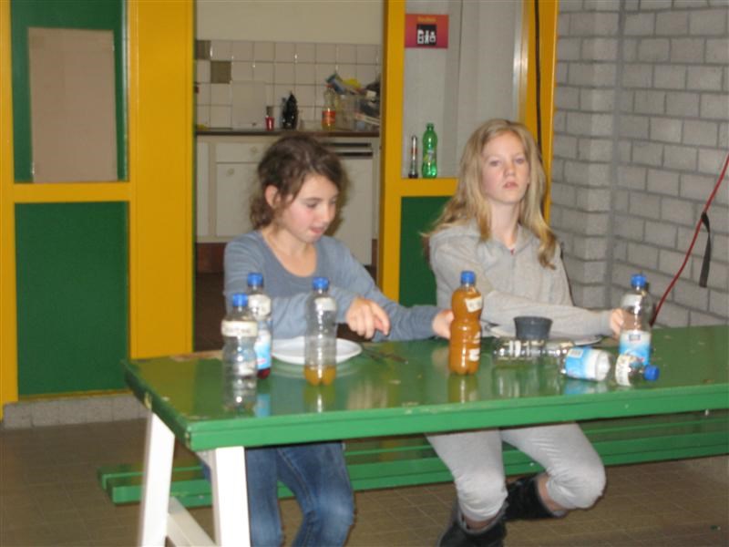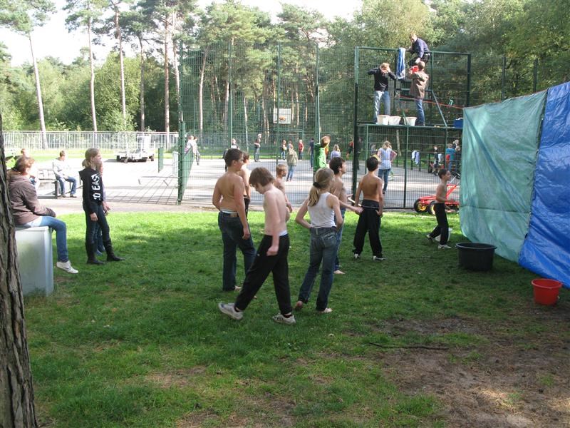 Toen naar het nachtspel. Daar moesten we in het bos naar twee watertonnen zoeken. Daar een bekertje water scheppen, en deze weer terugbrengen naar het begin, waar iedere groep zijn eigen emmer had staan. De bedoeling was dus om zoveel mogelijk water in de emmer te krijgen. Uiteraard waren er weer een aantal tikkers die helemaal verkleed waren en het ons erg moeilijk maakten. Voor de kleintjes waren die tikkers ook best een beetje spannend, maar aan de hand van een aantal mensen van de leiding, werden ze toch wel een stuk moediger. Helaas regende het flink en zijn we dus wat eerder gestopt. Vonden we niet zo erg, want we waren al erg moe. De allerjongsten lagen zelfs allang te slapen toen we terugkwamen.