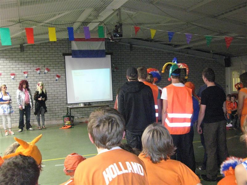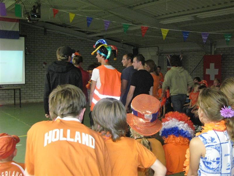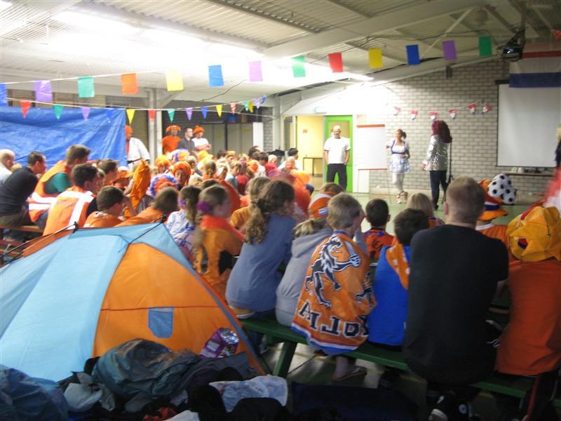 Toen weer even hard uitbuiken in de speeltuin, voordat we werden opgeroepen voor de bonte avond. Die was helemaal in stijl van het thema. Het was een soort quiz, gebaseerd op allerlei televisieprogramma’s, zoals ‘ik hou van Holland’, en ‘echt?waar!’. Er werden allerlei vragen gesteld en stukjes uitgebeeld, waar wij als groep antwoord op moesten geven. Dat was weer heel gezellig.