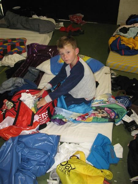 De oudere kinderen zijn meegenomen op een dropping/speurtocht, samen met de jongeren van de leiding. Ze werden achterin een vrachtwagentje naar een geheime plek gebracht. Zo geheim was hij alleen niet meer, omdat bij een paar mensen van de leiding al was uitgelekt waar we heen gingen, en een ander zijn telefoon niet had ingeleverd. We konden dus tijdens het rijden precies zien waar we waren! Toen de route volgen. We gingen meteen al verkeerd. Na bijna een kilometer, kwam degene die ons had afgezet weer langsrijden, en stuurde ons dus terug naar het beginpunt. We moesten wel de route volgen, om de volgende beschrijving te vinden. Daarna een uurtje gelopen……. De verkeerde kant op….. Degene die de leiding op zich had genomen ( we noemen geen namen… ), had blijkbaar nogal moeite met het kiezen voor links en rechts, op de enige kruising waar dat nodig was. En intussen regende het ook al behoorlijk. Leuk vooruitzicht, om eerst weer een uur terug te moeten lopen, en dan alsnog opnieuw te moeten beginnen. Gelukkig werd de route aangepast. We werden weer opgepikt door het vrachtwagentje, die ons meteen helemaal doorreed naar de volgende puzzel. We mochten kiezen of we nog door wilden, of dat we wilden blijven zitten. Een paar van ons hebben toen daar een puzzel gemaakt met een plattegrond erop van een gebiedje een kilometer verderop. Gelukkig werden we ook daar weer naartoe gebracht, maar in dat gebied moesten we het toch echt weer zelf doen omdat de wagen daar niet kon komen. We moesten daar 4 objecten zoeken, waarvan we er maar 2 gevonden hebben. Het weer werd zó slecht dat we weinig zin meer hadden om heel erg ons best te doen. Snel maar weer terug de wagen in. Er waren ook nog wat activiteiten op het kamp gepland, maar dat hebben we maar overgeslagen. Al met al hebben we ons best vermaakt, maar niet helemaal zoals het gepland was. Volgende keer beter dan maar.
